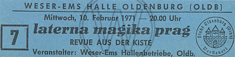 Eintrittskarte für das prager Theater Laterna Magika in der oldenburger Weser Ems Halle 10.02.1971