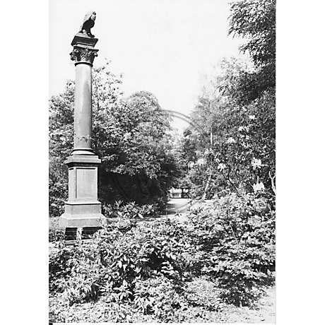 Abgebildet ist das Kriegerdenkmal im Wunderburgpark zur Erinnerung an die Gefallenen des Krieges 1870/71. Es stand bis 1962 an der Einmündung zur Ulmenstraße.