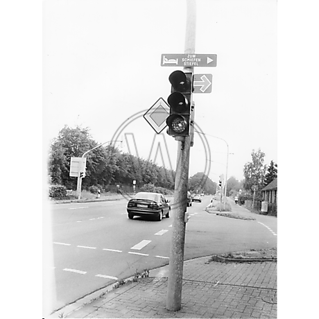 Ampel, Auto, Fahrradweg, Fotografie, PKW, Rosemeyer, Schnellstraße, schwarz-weiß, Straße, Straßenschild, Zum schiefen Stiefel