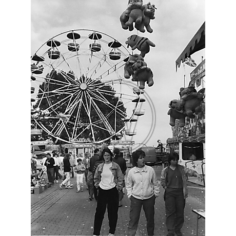 Attraktion, Fotografie, Garfield, Kramermarkt, Luftballons, Oldenburger Innenstadt, Riesenrad, Rosemeyer, schwarz-weiß
